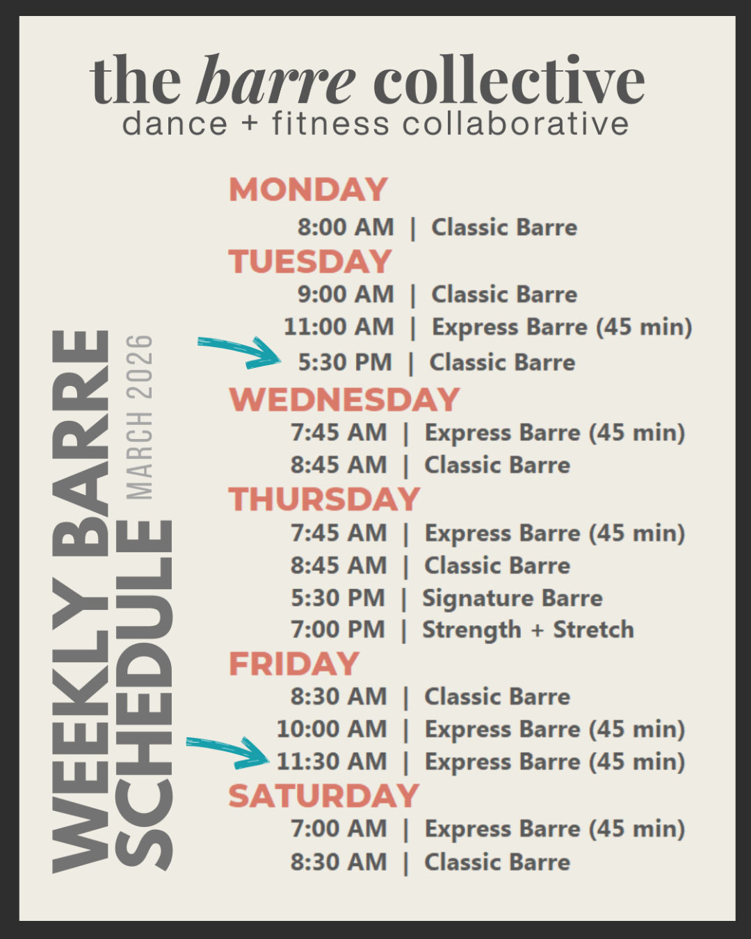 This Month at The Barre: New Schedules, Promotions & Events